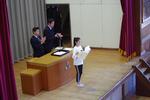 私からは、節分の話、市内書き初め展造形作品展、骨貯金の話をしました。今月の目標からは、感謝の気持ちを表すことについて話がありました。何気ない生活の中で交わす挨拶、お礼にも心をよせていきましょうね。表彰も、書道、体力証等についてありましたね。みなさんの頑張りに拍手!