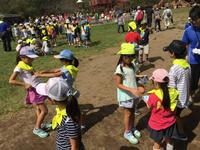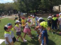 生活科てやっている昔遊びー。ひろいところでみんなで遠慮なくー。
