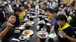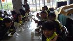 疲れた体でようやく宿につきました。バスでは疲れた表情をしていた子も、少しゆっくりしてから夕食の時間を迎え、元気が戻ってきました。みんなもりもり食事をしています。とてもうれしそうです。