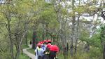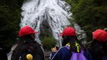 戦場ヶ原のハイキング。2時間半をかけて、ゆっくり景色を見たりネイチャーガイドさんの説明を聞いたりして、戦場ヶ原の知識をたくさん知ることができました。ハイキングの最終地点は湯滝。上の方から流れ落ちる大量の水を、みんなで見入っていました。
