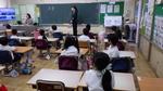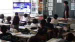 3年生の教室では、国語の学習で、絵文字の学習をしていました。絵文字とはどんなものなのか、実際の絵文字と教科書の説明文を照らし合わせて、学習していました。