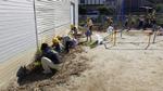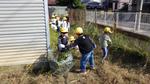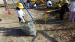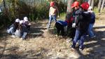 学年ごとに割り振られた場所の草取りを一生懸命行っています。取った草は、大きな袋に入れました。