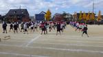 準備運動・体操を行った後、個人競技が行われました。その後、団体競技の台風の目。紅組白組、協力してレースをしました。