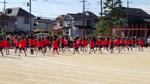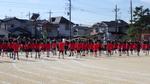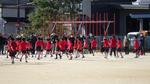 印象的な赤いシャツで、練習してきたダンスを踊ります。みんな元気に、練習した通りに踊りました。