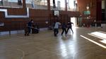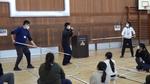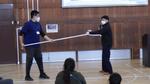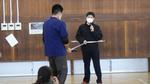 子供たちが下校した後は、先生方の研修会です。さすまたの使い方を中心に、実践的な訓練を行いました。相手の動きを止めるには、どのように使えばよいか、考えながら訓練をしました。