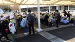 エキスポセンターに到着しました。まずは昼食。保護者の皆様、朝から準備をありがとうございました。