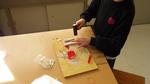 コリントゲームと言って、ビー玉を木の棒ではじくゲーム板を作っています。金づちを使ってくぎを打つことはなかなかないと思います。学校の方で、安全に使う経験をさせて、工具を上手に使えるようにさせます。