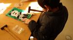 図工室から「コン、コン」と、金づちでくぎを打つ音が響いてきます。3年生が「釘打ちトントン」の学習をしているようです。