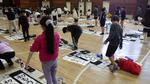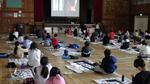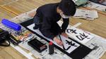 お正月は書き初め。ということで、今日は3,4年生が書き初め練習をしました。3,4時間目、4年生が体育館で練習を行いました。お習字の先生に来ていただき、教わりました。
