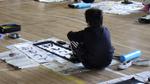書いていた文字を、立ち上がって上から眺め、文字の大きさやバランス具合を確認しました。