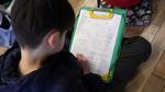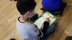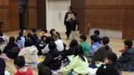 子供たちは、話を聞いて、ワークシートにメモを取っていました。