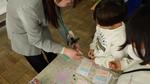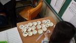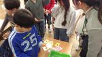 カップに10個ずつ入れていくグループ、カードで示していくグループなど、にぎやかな様子。みんなで話し合って解決しようと、がんばっています。