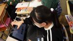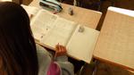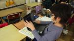 4年生が社会科の学習で、「房州うちわ」について調べています。調べた内容をきれいに記録している子、
