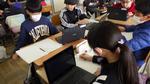 今日の学習は、友達と話し合ったりタブレットで調べものをしたりして、内容をまとめ始めるところでした。