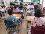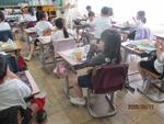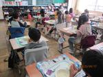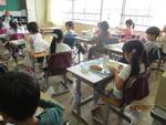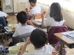 給食の時間です。2年生が配膳を終えて、食事を始めました。