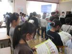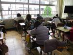 こちらはテスト中。みんな一生懸命に問題を解いています。これまで学習してきたことが身についているかな?これから学習がすすんでくると、多少難しくなってきます。これまでの学年で学んだことがベースとなりますので、身についていない子は、復習を。