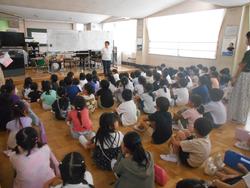 音楽専科の先生のお話をよく聞いて、リズムのまねっ子をしたり、やさしくひびく声の出し方を練習したり、言葉を大切にして歌ったりと力を合わせて取り組みました。
