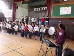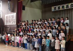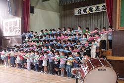 もう一度保護者の皆様に入れ替わっていただき、2年生の出番です。実は夏休みから「おどるポンポコリン」の鍵盤ハーモニカ練習は始まっていたのです。「太陽のサンバ」もテンポの速い曲で、たがいの声を聴き合って一生懸命合わせていました。