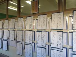 1月9日(金)と13日(火)に校内書き初め大会を実施しました。1・2年生はフェルトペンを使い、3年生以上は毛筆で、学年の課題の言葉を集中して丁寧に書きあげました。廊下に掲示しますので23日の授業参観の際は子どもたちの力作をどうぞご覧ください。