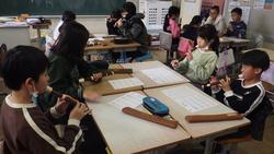 リコーダーは、いよいよ右手も使うようになり、難しくなってきたところです。6年生は、3年生一人一人に丁寧に教えてくれました。タンギングを上手にするためのコツなども教えてくれて音色がとてもきれいになりました。最後に6年生と一緒にアンサンブルを合わせ、和やかに練習を終えました。