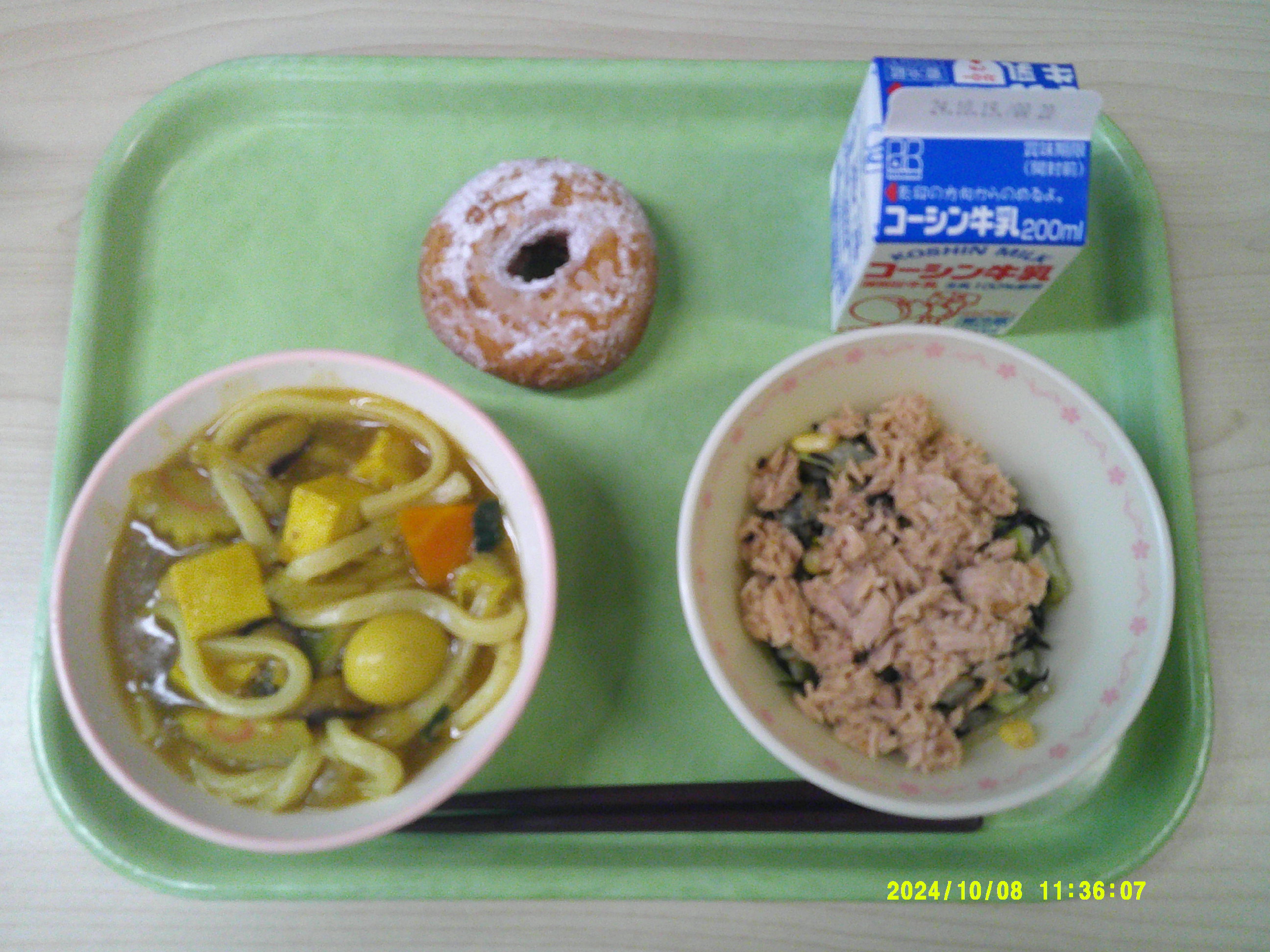 | 8 | 火 | カレーうどん ツナサラダ たまごドーナッツ ぎゅうにゅう |