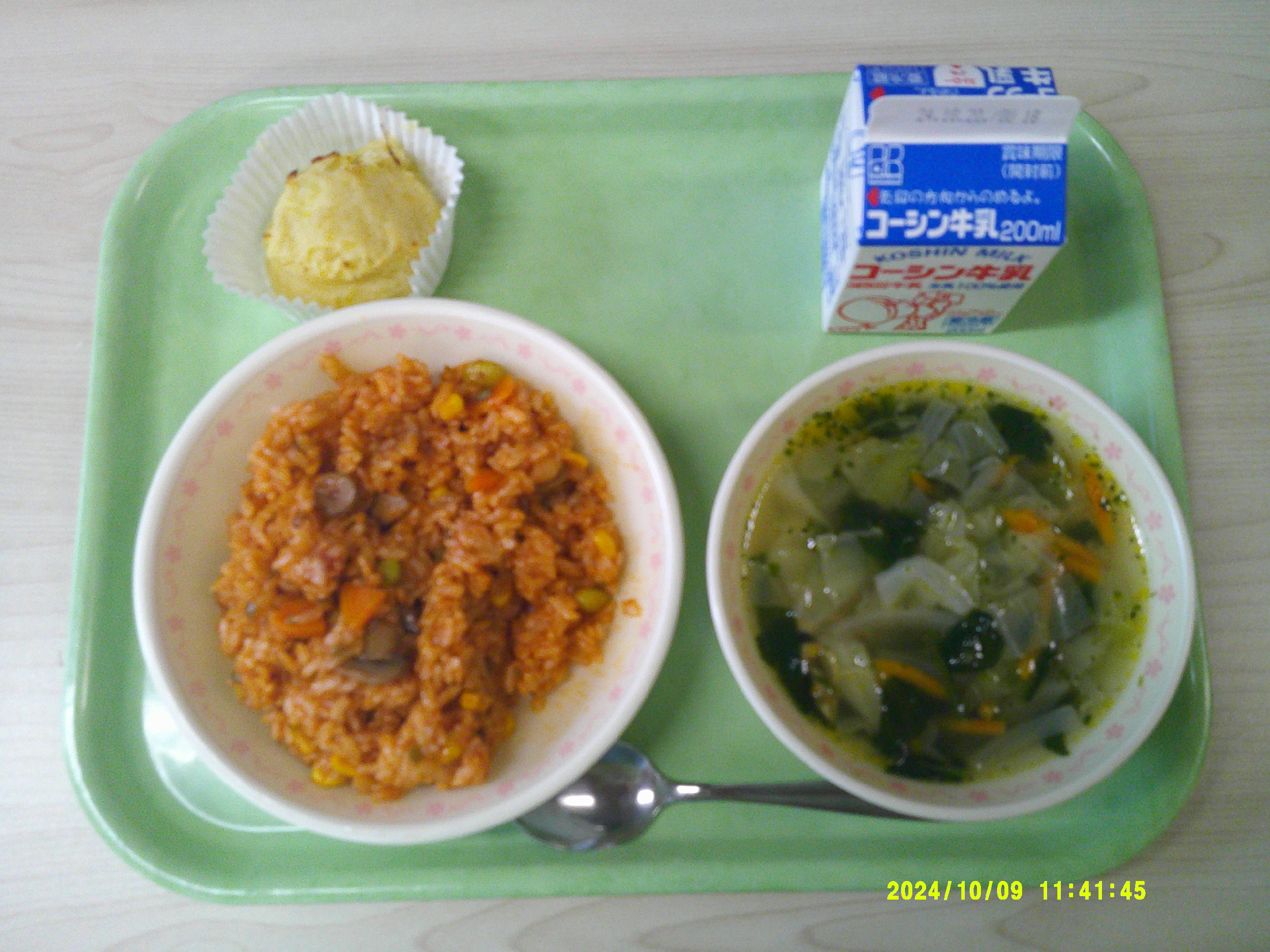| 9 | 水 | チキンライス やさいスープ スイートビーンズポテト ぎゅうにゅう |