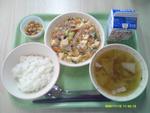 | 12 | 水 | ごはん とうふのちゅうかに はくさいのスープ ポップビーンズ ぎゅうにゅう |