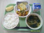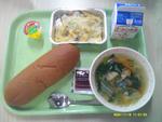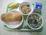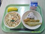 | 6 | 木 | しっぽくうどん わかめおにぎり こもちししゃもフリッター バナナ ぎゅうにゅう |