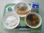 | 5 | 水 | ごはん たらのマヨネーズやき じゃがいものきんぴら みそしる りんご ぎゅうにゅう |