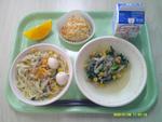 | 14 | 金 | おやこどん かいそうサラダ とうにゅういりぐだくさんじる オレンジ ぎゅうにゅう |