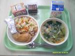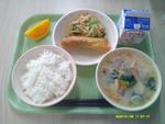 | 15 | 月 | ごはん さけとチーズのはるまき ごまずあえ とうにゅういりぐだくさんじる オレンジ ぎゅうにゅう |