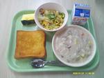 | 2 | 火 | コッペパン タンドリーサーモン えだまめポテト コーンポタージュ きっかみかん ぎゅうにゅう |