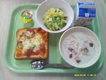 | 20 | 火 | ピザトースト ひよこまめのクリームスープ なつみかんサラダ ひとくちピーチゼリー ぎゅうにゅう |