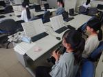 音楽室、PC室では、ブラスバンド部が楽譜に、必要な内容を記入したり、