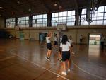 横のリングを使って、ドリブルシュートの練習をしているグループ、