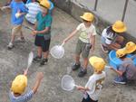 校庭では、2年生、3年生がドッジビーや花いちもんめなど、
