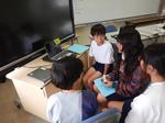 3、4人のグループになり、タブレットの画面越しに英会話を行う授業です。