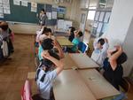 先生の発音に合わせて、身振りも加えて発音をしていました。