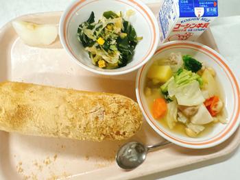 きなこ揚げパン 海藻サラダ ポトフ 梨(あきづき) 牛乳