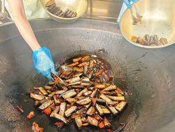 大きな回転釜でじっくり煮た秋刀魚は骨までやわらかく、