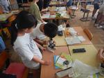 見えた花粉の様子を、友達と伝え合いながら学習していました。