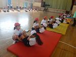 反復横跳び、上体起こし、立ち幅跳びを行っていました。