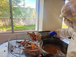 下味をつけた鶏肉にでんぷんをつけ揚げ、