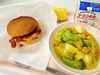 チキンバーガー カレーポトフ パインアップル 牛乳