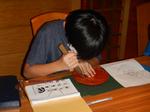 「ひっかき」という道具を使って、考えてきたデザインを彫ることに挑戦しました。