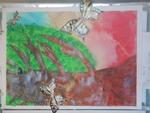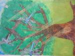 幹の細かな模様、背景の色、昆虫や人物などを、丁寧に表現しました。