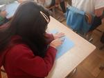 特に、彫刻刀を持っていない手の置き方に、気を付けることを教えていただきました。