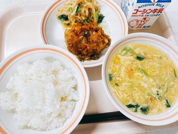ごはん 油淋鶏 切り干し大根のナムル スーミータン 牛乳