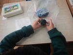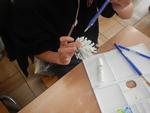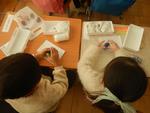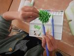 関さんの森などでいただいた松ぼっくりに、色を塗ります。