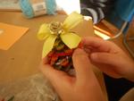 次に、色とりどりの飾りをつけたら、「松ぼっくりのツリー」が完成です!